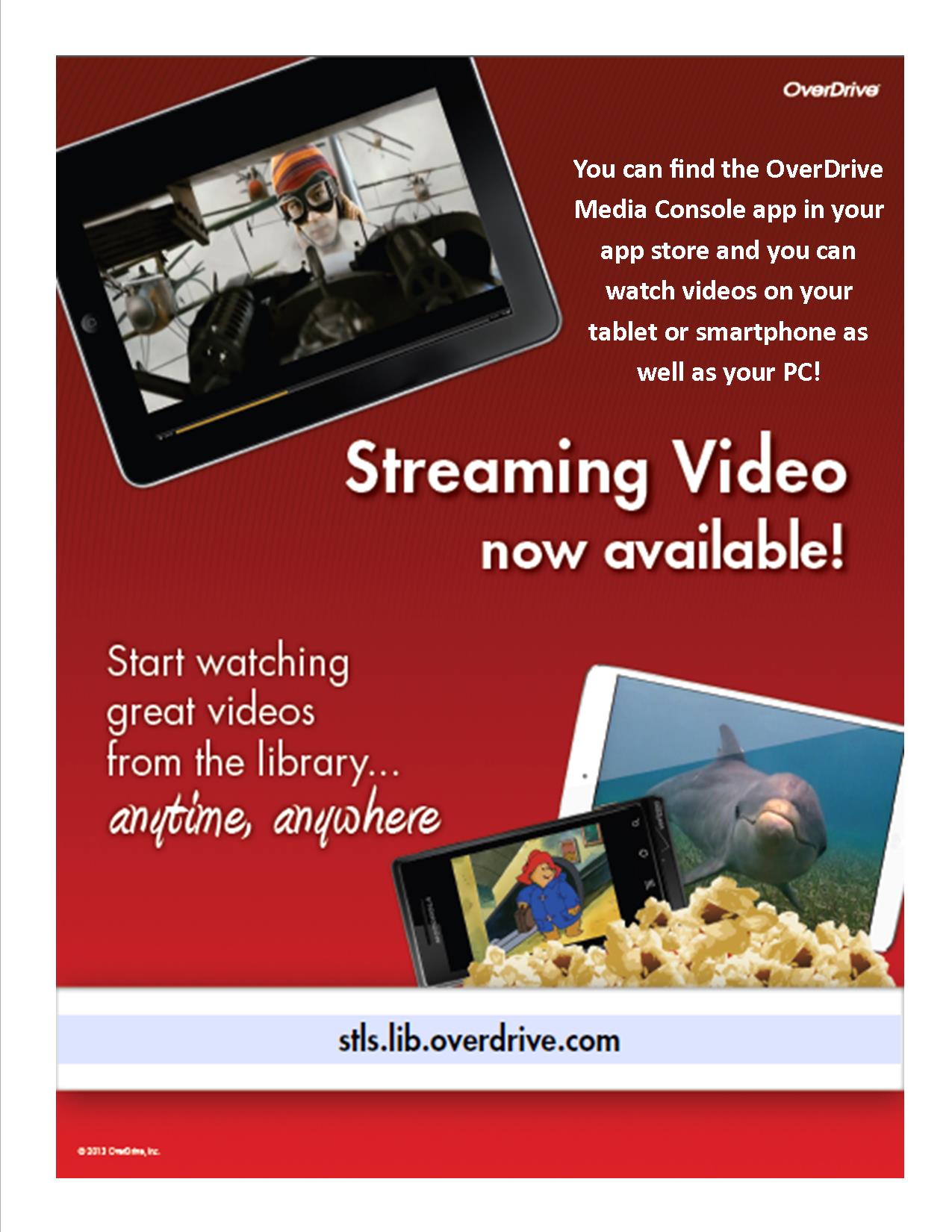 Hi everyone, today there are new streaming video titles available in the STLS Digital Catalog. You can check them out and stream them to your smartphone or tablet by simply installing the OverDrive Media Console app. And of course, you can check out free e-books and audio books too! I’ll be posting a separate list of new e-books and audio books that have been added to the STLS Digital Catalog today too shortly.