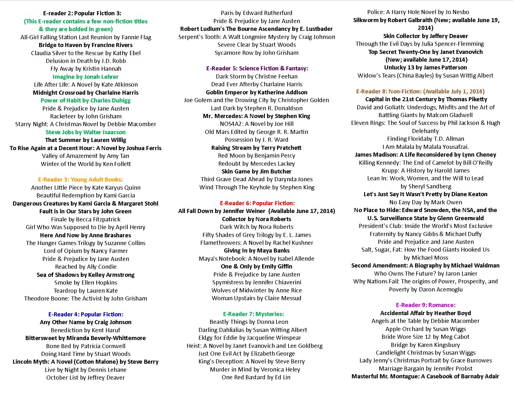 We’ve just added new e-book titles to the library’s collection of circulating e-readers!