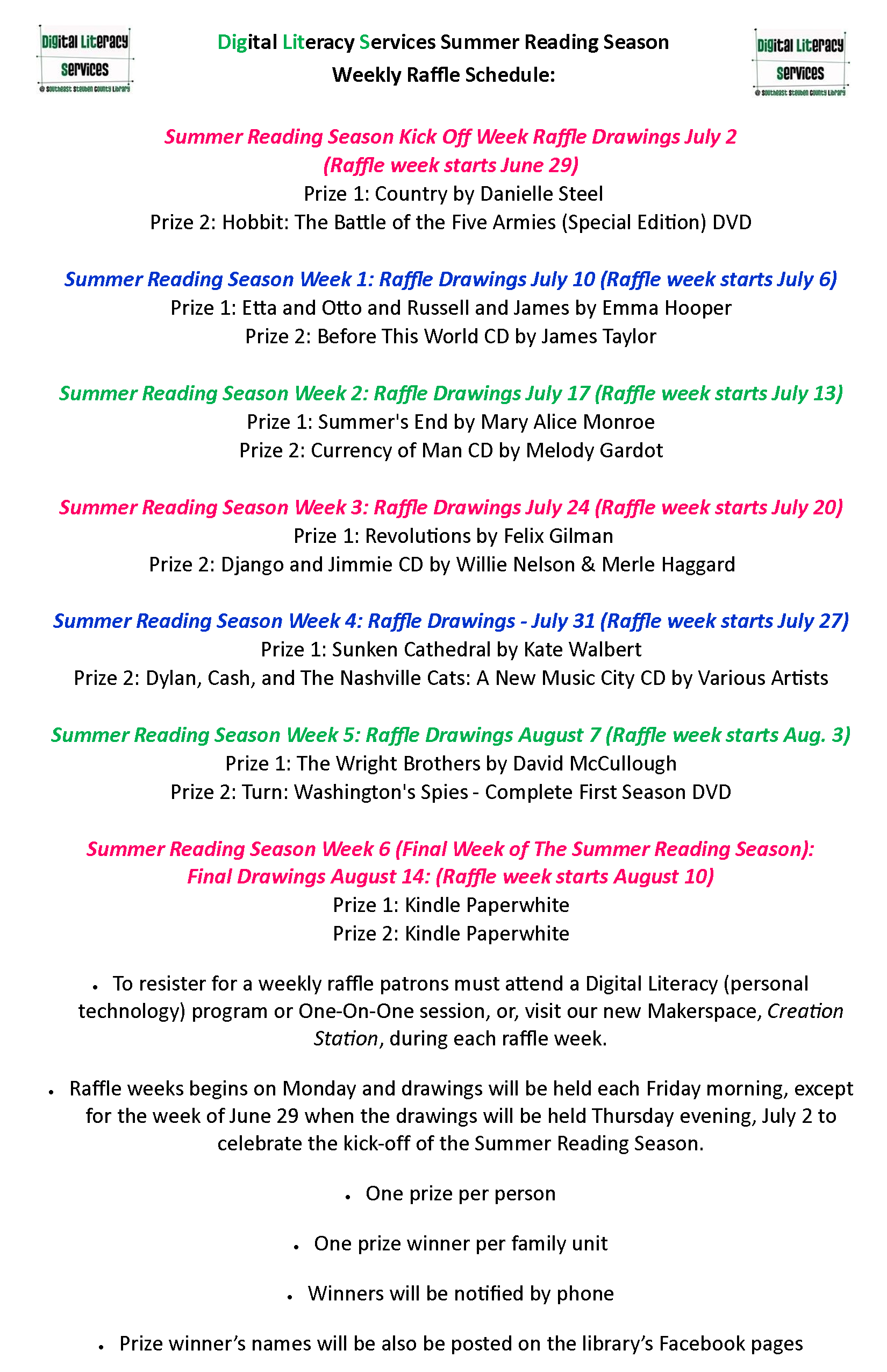 If you’d like to be added to our weekly Adult Services & Personal Technology (AKA Digital Literacy) Email notifications list just send us an email and each Monday you’ll receive an email offering information on the programs being held at the library in the upcoming week.