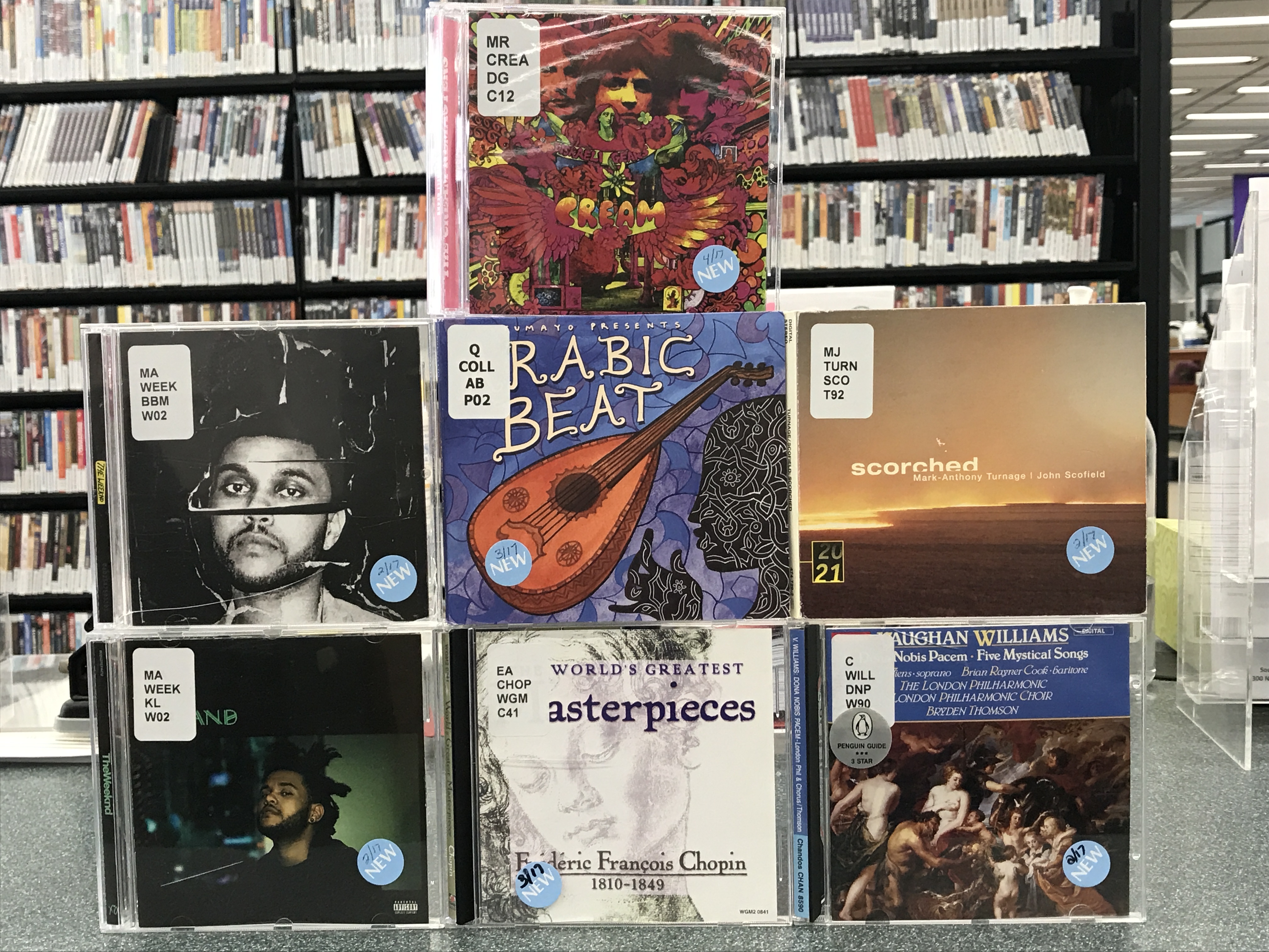 Our first three Digital Displays are of new music compact discs, found in the New Section at the library and here they are: